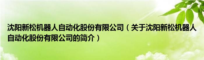 本文關于沈陽新松機器人自動化股份有限公司的簡介就講解完畢,希望對大家有所幫助。