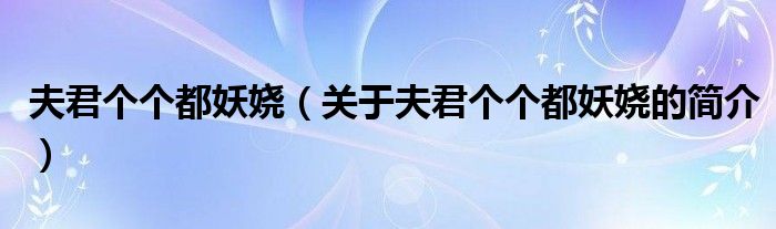 本文關(guān)于夫君個個都妖嬈的簡介就講解完畢,希望對大家有所幫助。