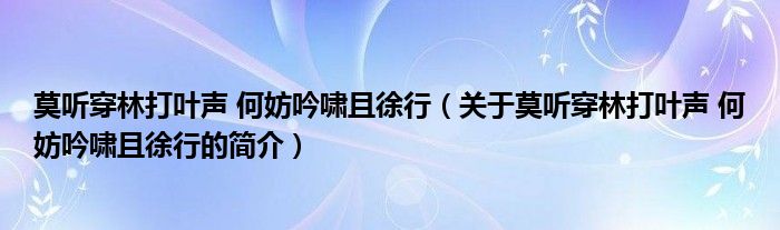 本文關于莫聽穿林打葉聲 何妨吟嘯且徐行的簡介就講解完畢,希望對大家有所幫助。