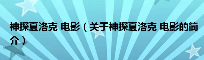 本文關于神探夏洛克 電影的簡介就講解完畢,希望對大家有所幫助。