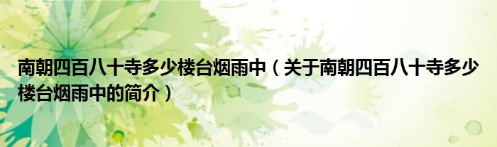 本文關于南朝四百八十寺多少樓臺煙雨中的簡介就講解完畢,希望對大家有所幫助。