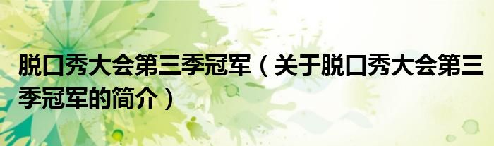 本文關(guān)于脫口秀大會第三季冠軍的簡介就講解完畢,希望對大家有所幫助。