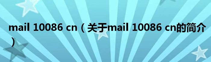 大家好,mail 10086 cn,關于mail 10086 cn的簡介很多人還不知道,現在讓我們一起來看看吧!