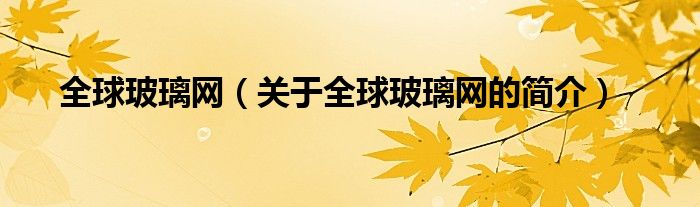 本文關于全球玻璃網的簡介就講解完畢,希望對大家有所幫助。
