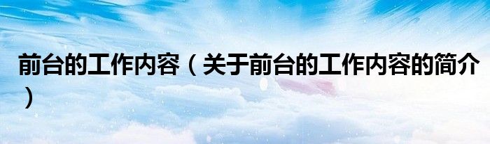 大家好,前臺(tái)的工作內(nèi)容,關(guān)于前臺(tái)的工作內(nèi)容的簡介很多人還不知道,現(xiàn)在讓我們一起來看看吧!