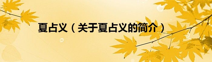 本文關于夏占義的簡介就講解完畢,希望對大家有所幫助。