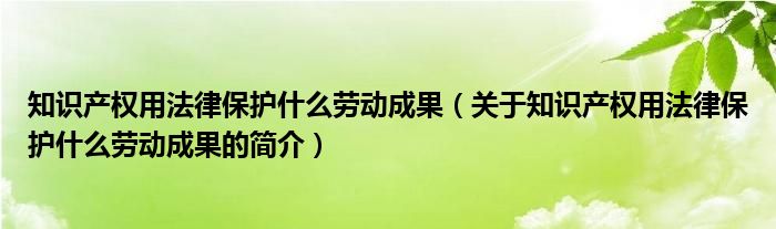 本文關(guān)于知識產(chǎn)權(quán)用法律保護什么勞動成果的簡介就講解完畢,希望對大家有所幫助。