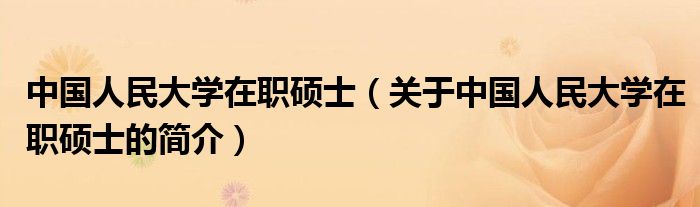 本文關于中國人民大學在職碩士的簡介就講解完畢,希望對大家有所幫助。