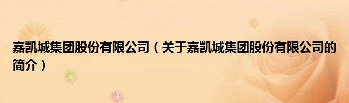 本文關于嘉凱城集團股份有限公司的簡介就講解完畢,希望對大家有所幫助。