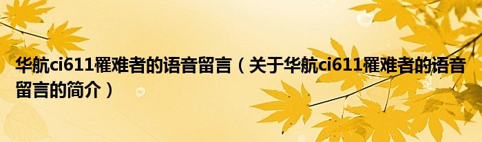 大家好,華航ci611罹難者的語音留言,關于華航ci611罹難者的語音留言的簡介很多人還不知道,現在讓我們一起來看看吧!