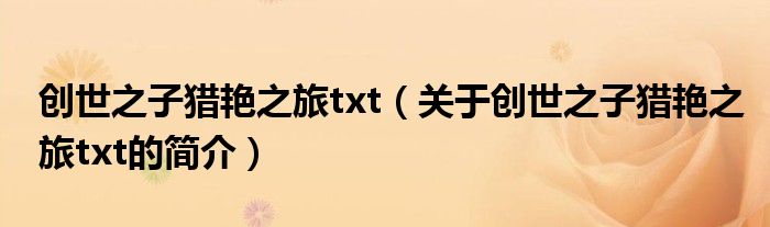 本文關(guān)于創(chuàng)世之子獵艷之旅txt的簡(jiǎn)介就講解完畢,希望對(duì)大家有所幫助。