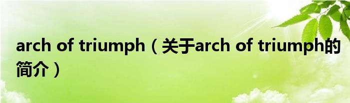 大家好,arch of triumph,關(guān)于arch of triumph的簡介很多人還不知道,現(xiàn)在讓我們一起來看看吧!