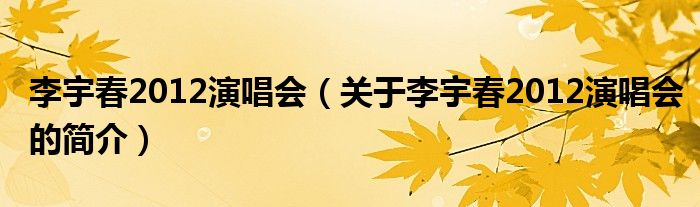 本文關于李宇春2012演唱會的簡介就講解完畢,希望對大家有所幫助。