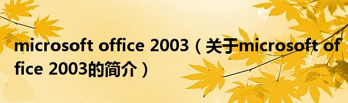 大家好,microsoft office 2003,關于microsoft office 2003的簡介很多人還不知道,現在讓我們一起來看看吧!