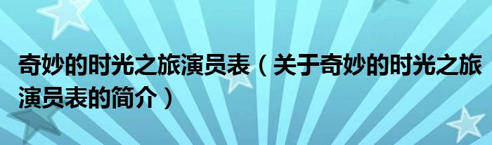 本文關于奇妙的時光之旅演員表的簡介就講解完畢,希望對大家有所幫助。