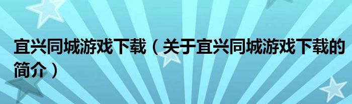 本文關于宜興同城游戲下載的簡介就講解完畢,希望對大家有所幫助。