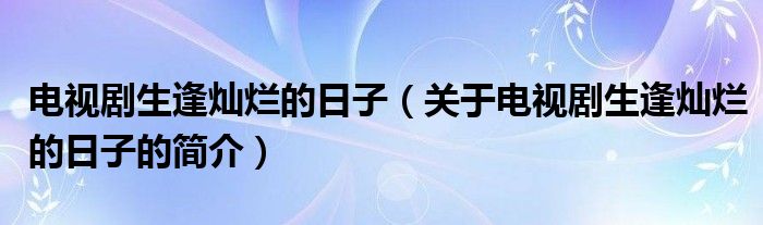 本文關于電視劇生逢燦爛的日子的簡介就講解完畢,希望對大家有所幫助。