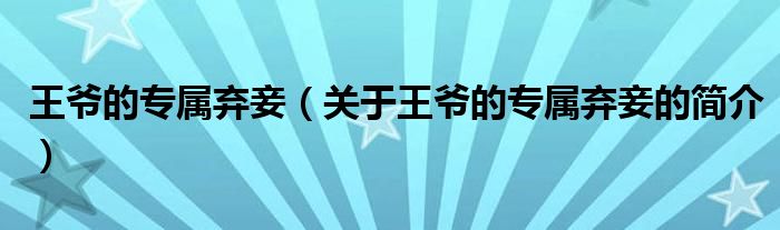 本文關(guān)于王爺?shù)膶贄夋暮?jiǎn)介就講解完畢,希望對(duì)大家有所幫助。