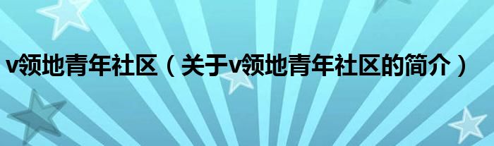 本文關(guān)于v領(lǐng)地青年社區(qū)的簡(jiǎn)介就講解完畢,希望對(duì)大家有所幫助。