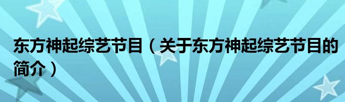 大家好,東方神起綜藝節(jié)目,關于東方神起綜藝節(jié)目的簡介很多人還不知道,現(xiàn)在讓我們一起來看看吧!