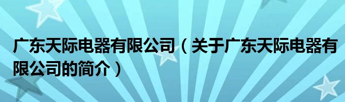 本文關于廣東天際電器有限公司的簡介就講解完畢,希望對大家有所幫助。