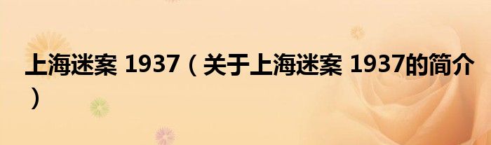 大家好,上海迷案 1937,關(guān)于上海迷案 1937的簡(jiǎn)介很多人還不知道,現(xiàn)在讓我們一起來(lái)看看吧!
