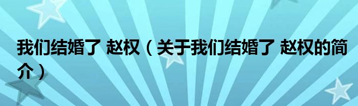 大家好,我們結婚了 趙權,關于我們結婚了 趙權的簡介很多人還不知道,現在讓我們一起來看看吧!