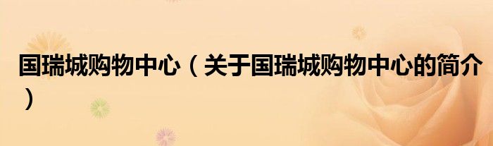 本文關(guān)于國瑞城購物中心的簡介就講解完畢,希望對大家有所幫助。