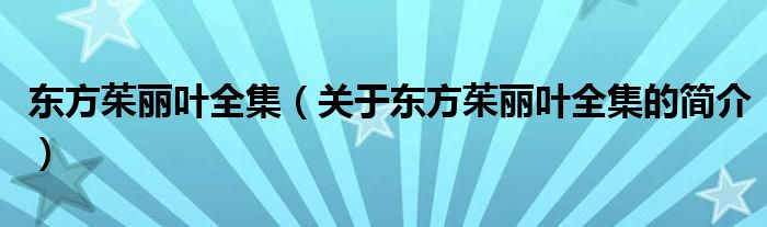 大家好,東方茱麗葉全集,關于東方茱麗葉全集的簡介很多人還不知道,現在讓我們一起來看看吧!