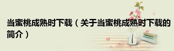 大家好,當蜜桃成熟時下載,關于當蜜桃成熟時下載的簡介很多人還不知道,現在讓我們一起來看看吧!