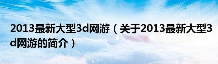 本文關于2013最新大型3d網游的簡介就講解完畢,希望對大家有所幫助。