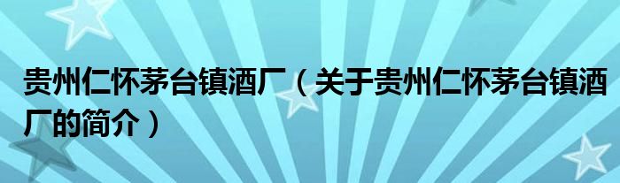 本文關于貴州仁懷茅臺鎮酒廠的簡介就講解完畢,希望對大家有所幫助。
