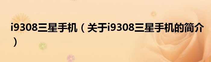 本文關于i9308三星手機的簡介就講解完畢,希望對大家有所幫助。
