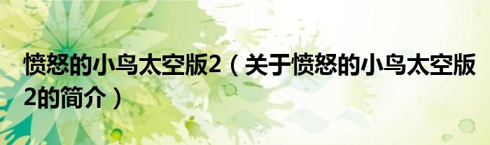 本文關(guān)于憤怒的小鳥太空版2的簡介就講解完畢,希望對大家有所幫助。