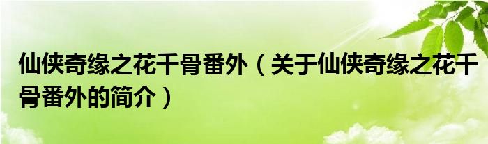 本文關于仙俠奇緣之花千骨番外的簡介就講解完畢,希望對大家有所幫助。