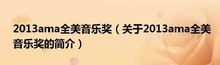 大家好,2013ama全美音樂獎,關于2013ama全美音樂獎的簡介很多人還不知道,現在讓我們一起來看看吧!
