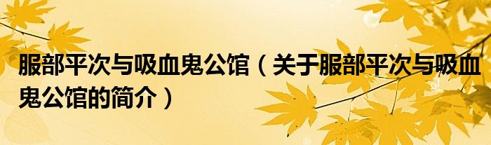 本文關于服部平次與吸血鬼公館的簡介就講解完畢,希望對大家有所幫助。