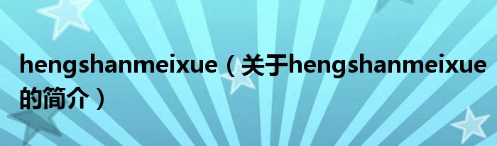 本文關于hengshanmeixue的簡介就講解完畢,希望對大家有所幫助。