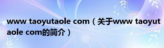 大家好,www taoyutaole com,關于www taoyutaole com的簡介很多人還不知道,現在讓我們一起來看看吧!