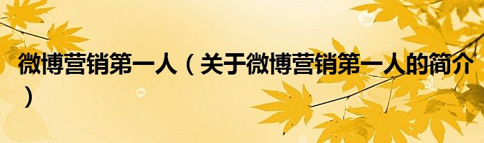 本文關(guān)于微博營(yíng)銷第一人的簡(jiǎn)介就講解完畢,希望對(duì)大家有所幫助。