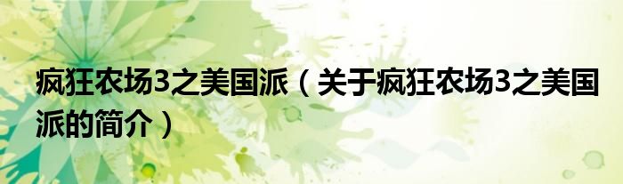 本文關于瘋狂農場3之美國派的簡介就講解完畢,希望對大家有所幫助。