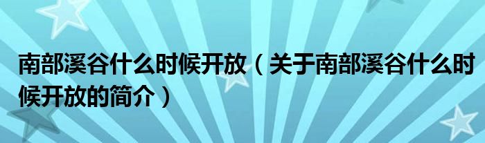 本文關于南部溪谷什么時候開放的簡介就講解完畢,希望對大家有所幫助。