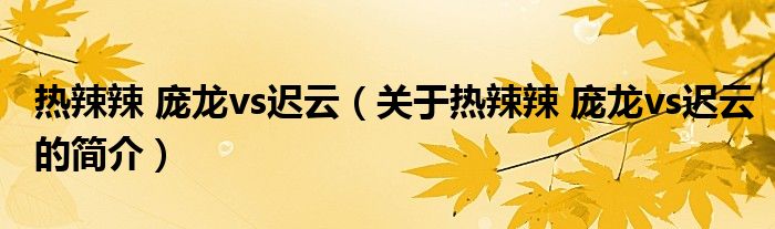 大家好,熱辣辣 龐龍vs遲云,關于熱辣辣 龐龍vs遲云的簡介很多人還不知道,現在讓我們一起來看看吧!