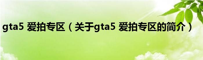 本文關(guān)于gta5 愛(ài)拍專區(qū)的簡(jiǎn)介就講解完畢,希望對(duì)大家有所幫助。