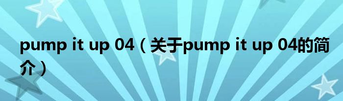 本文關(guān)于pump it up 04的簡(jiǎn)介就講解完畢,希望對(duì)大家有所幫助。