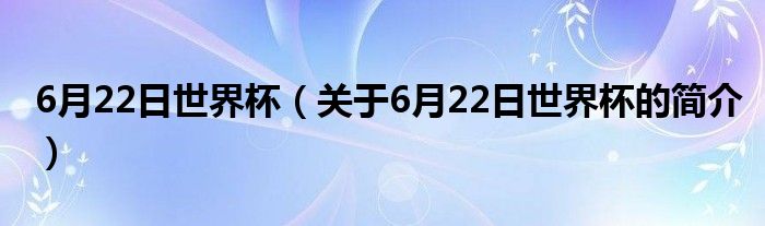 大家好,6月22日世界杯,關于6月22日世界杯的簡介很多人還不知道,現在讓我們一起來看看吧!