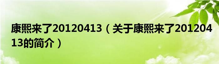 大家好,康熙來了20120413,關于康熙來了20120413的簡介很多人還不知道,現在讓我們一起來看看吧!