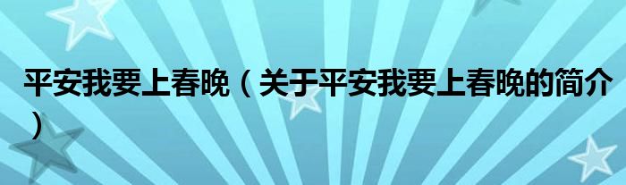 本文關于平安我要上春晚的簡介就講解完畢,希望對大家有所幫助。
