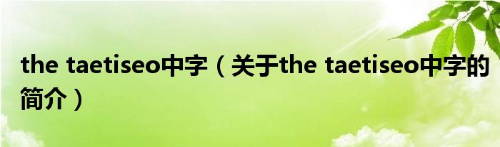 本文關于the taetiseo中字的簡介就講解完畢,希望對大家有所幫助。