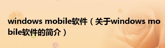 本文關于windows mobile軟件的簡介就講解完畢,希望對大家有所幫助。